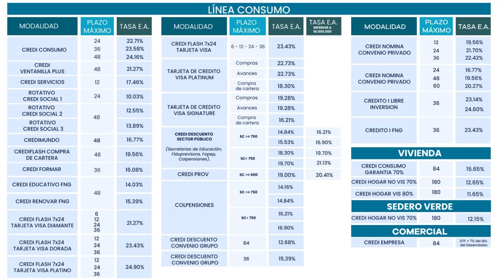 Modalidad de crédito con destino libre inversión, diseñada específicamente para aquellos asociados que ya han establecido una sólida experiencia crediticia con nosotros. Esta modalidad está diseñada para brindarles una tasa preferencial y una mayor flexibilidad en sus necesidades financieras.